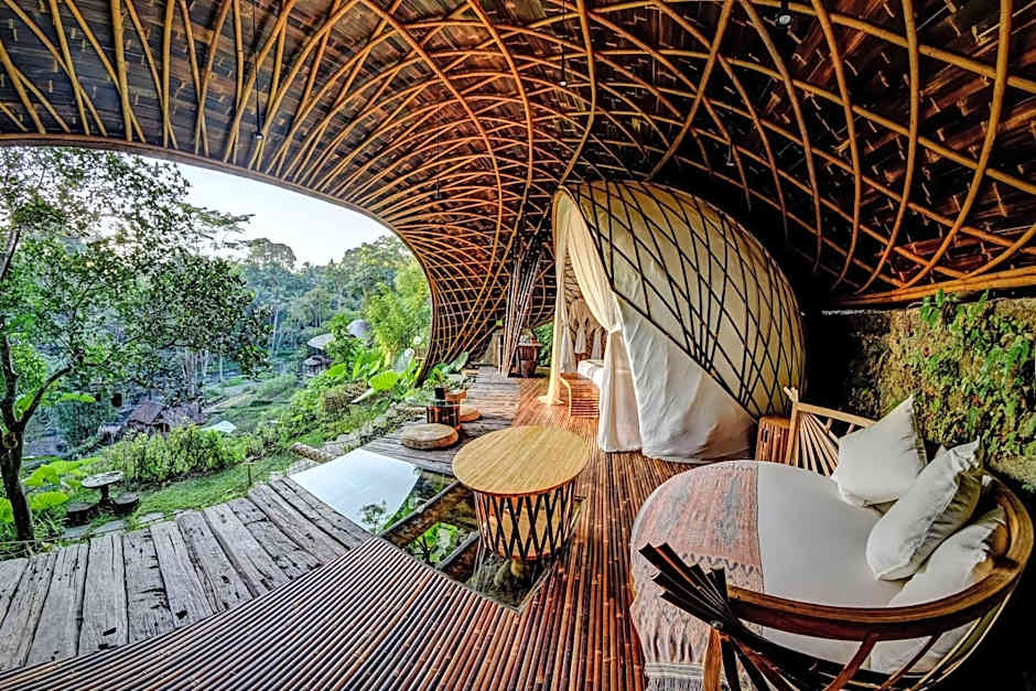 Bambu Indah Resort is a 4-star retreat in Ubud, Indonesia, just 1,9mi from the city center. The address is Banjar Baung, Desa Sayan, offering a peaceful base amid lush surroundings. Breakfast is offered, and rates start from £330 per night, with 454 reviews shaping the traveler’s impression.